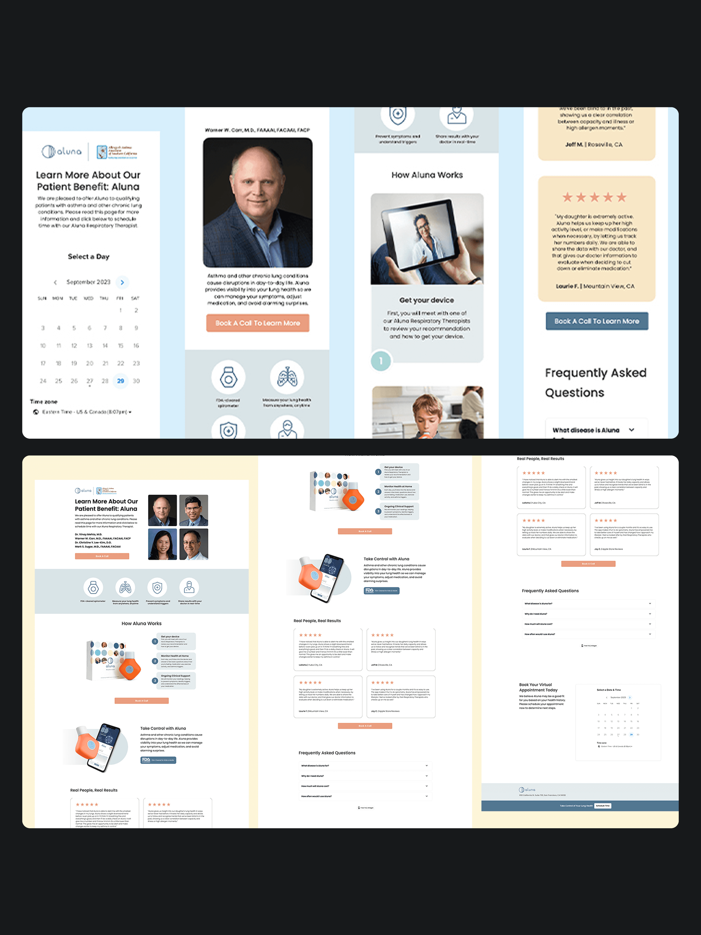 Aluna needed a way to support doctors who recommended its award-winning spirometer by providing them with branded, professional landing pages. The existing marketing experience lacked personalization, making it harder for healthcare providers to present Aluna as a trusted, integrated tool in their patient care.